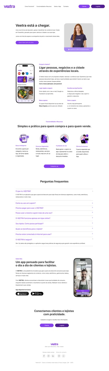 O Veetra é um aplicativo de cupons e ofertas localizado em Portugal, criado para conectar consumidores a estabelecimentos parceiros de forma simples, rápida e vantajosa. Fui responsável pelo desenvolvimento completo da identidade da marca, desde seu conceito visual até a aplicação em todos os pontos de contato.