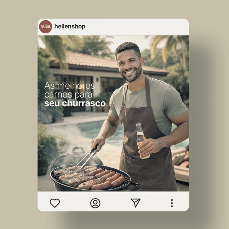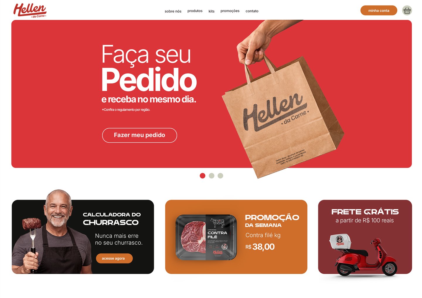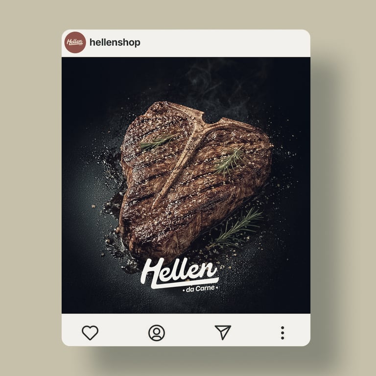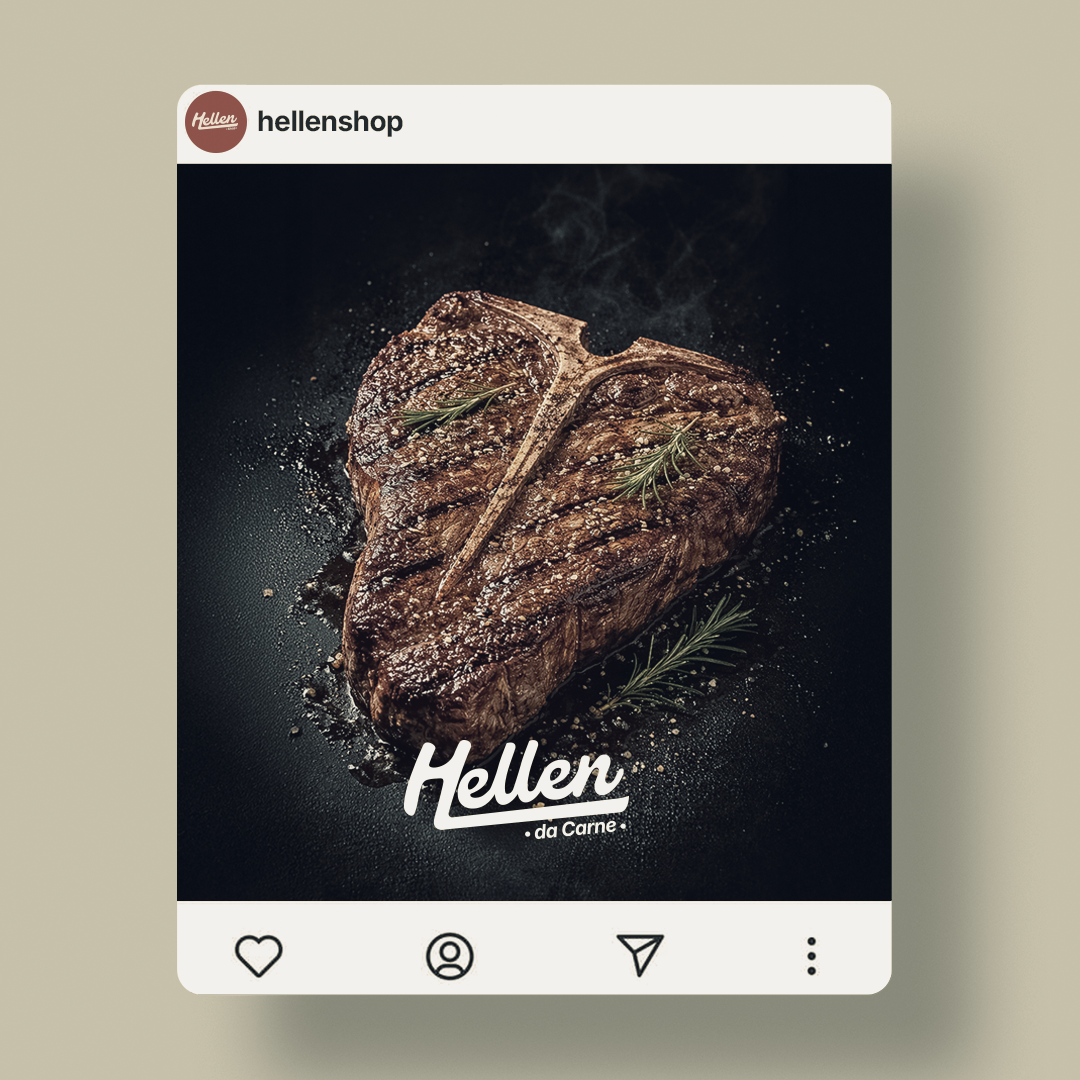 O resultado é uma presença online clara e bem alinhada à identidade da Hellen da Carne, fortalecendo o posicionamento da marca nas redes sociais e ampliando sua visibilidade e conexão com os clientes no ambiente digital.