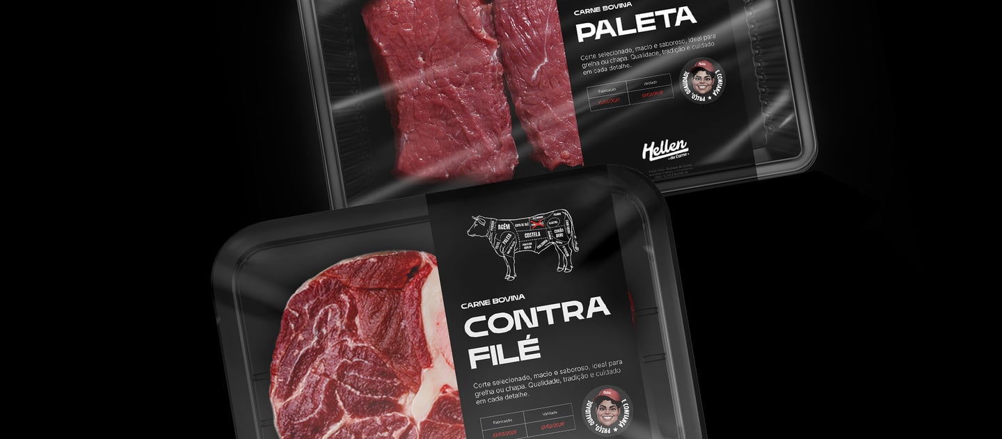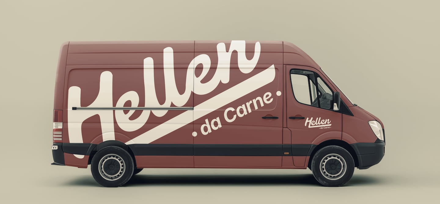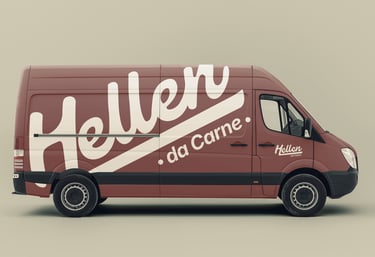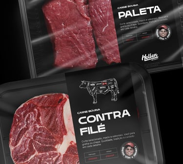Para a Hellen da Carne, desenvolvi todo o projeto de branding, desde a criação do logotipo até suas aplicações em diferentes pontos de contato da marca. O objetivo foi construir uma identidade forte, confiável e visualmente marcante, capaz de comunicar qualidade, tradição e proximidade com o cliente.