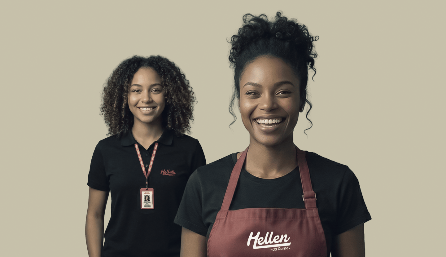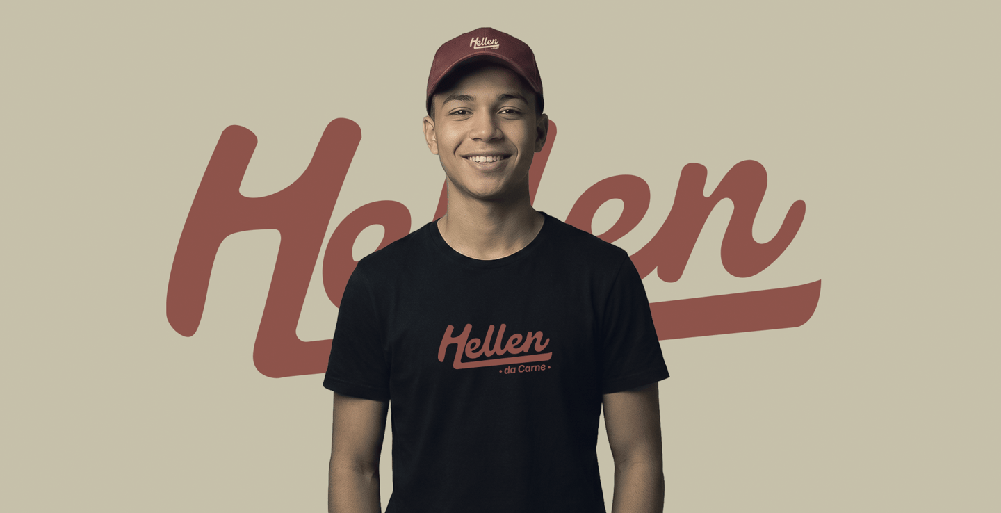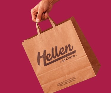 Também desenvolvi as principais aplicações, incluindo fachada, embalagens, materiais de ponto de venda, uniformes e comunicação digital, garantindo consistência visual e reconhecimento imediato. O resultado é uma marca sólida e bem estruturada, que reforça o posicionamento da Hellen da Carne e contribui para sua presença profissional no mercado.