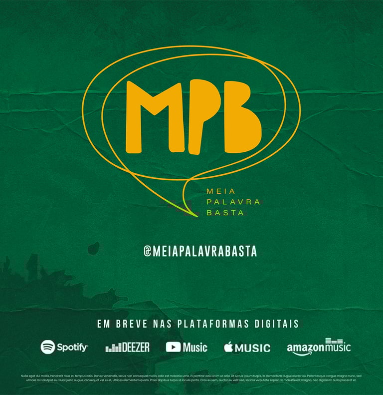 Para a empresa Kátia Bagnarelli Produções, desenvolvi o conceito visual (KV) do piloto do programa de entrevistas “MPB – Meia Palavra Basta”, um formato que propõe conversas profundas, sensíveis e autênticas, conduzidas pela força da palavra, da música e da memória cultural brasileira.