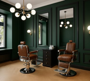 O trabalho envolveu a criação do conceito central da marca, definição da paleta de cores, tipografia, símbolos e a construção de uma linguagem visual capaz de reforçar tanto o aspecto clássico da barbearia quanto a atmosfera acolhedora do bar. Criei um sistema de marca versátil, pensado para funcionar em fachadas, uniformes, materiais internos, comunicação digital e peças promocionais.