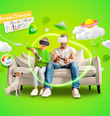 Para a campanha interna de Dia das Crianças da Oi, desenvolvi o conceito visual completo, explorando uma linguagem lúdica, vibrante e acolhedora para celebrar a data com criatividade e integração entre colaboradores e suas famílias. O objetivo foi criar uma comunicação leve e inspiradora, capaz de traduzir o espírito infantil em um contexto corporativo.