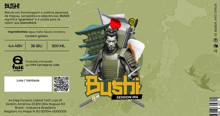 Os rótulos Bushi e Nikkey foram desenvolvidos como uma edição especial da Cervejaria QFase para celebrar a história da migração japonesa no Brasil, com foco no município de Itaguaí, onde essa influência cultural é particularmente significativa. A proposta visual combinou elementos da tradição japonesa com a estética contemporânea da marca, criando rótulos que não apenas destacam o produto, mas também contam uma história.