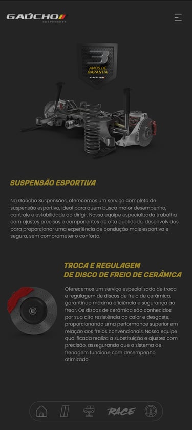 A solução foi projetada para reduzir dúvidas, agilizar atendimentos e profissionalizar ainda mais a jornada do cliente. Com foco em usabilidade, o design privilegia clareza visual, organização e uma navegação fluida, reforçando a credibilidade da Gaúcho Suspensões e facilitando a tomada de decisão do usuário antes mesmo de chegar à loja.